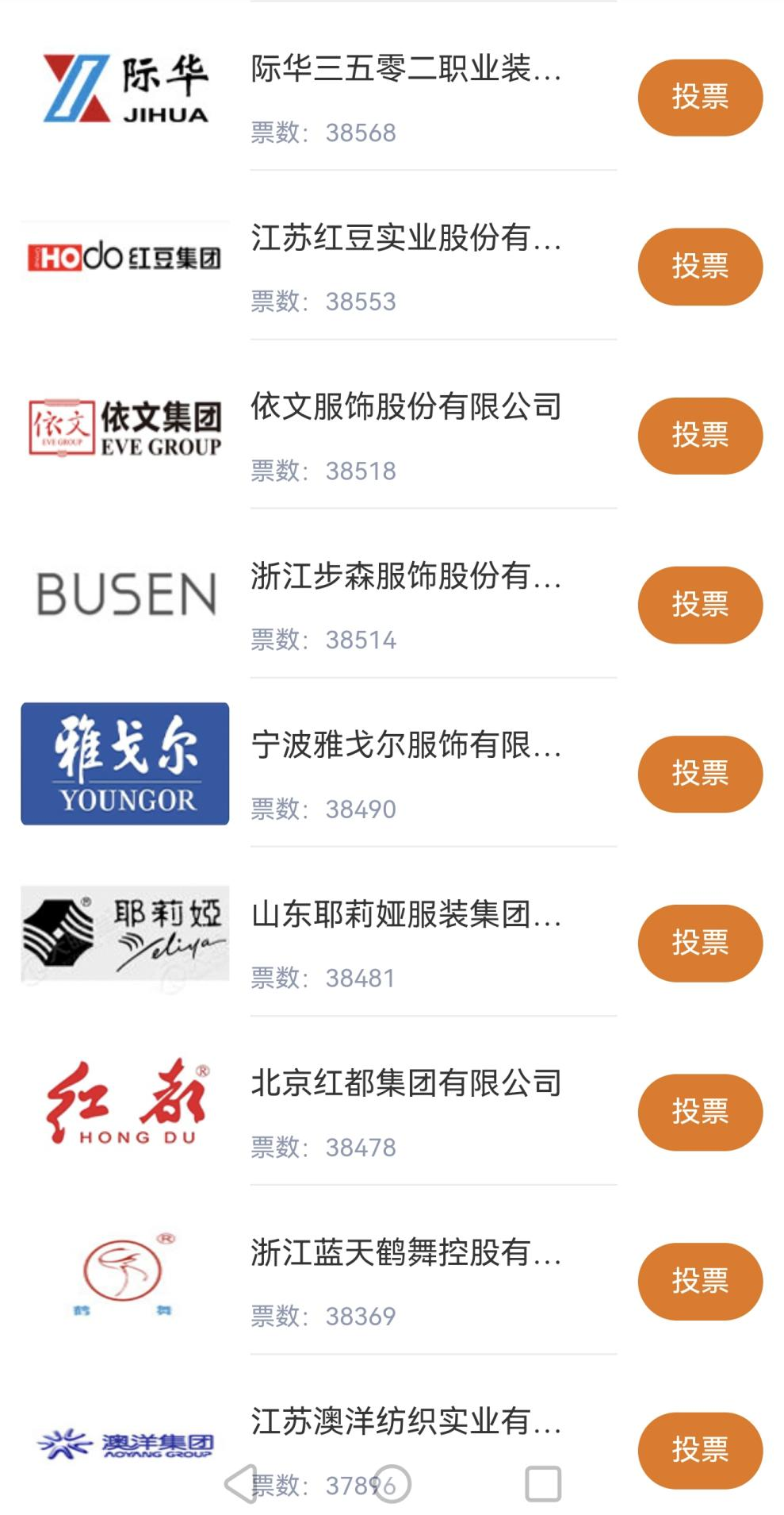 纵脱1月22日9:40分,网上共展示272家参评企业,总票数 4160977 票,得票前10名如下: